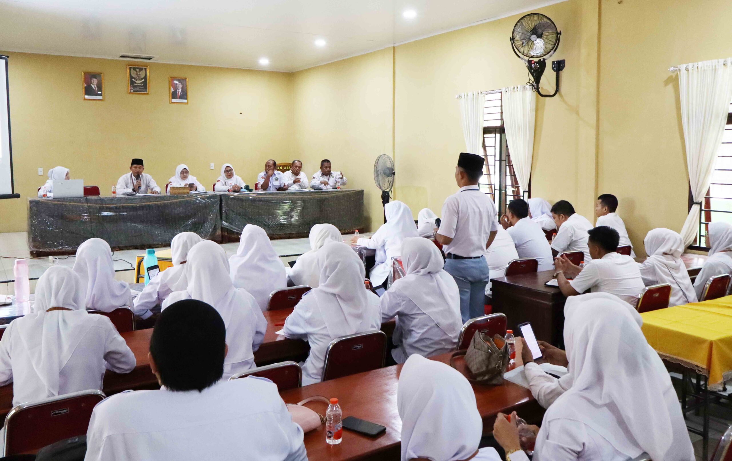 Kisaran (Humas). Dalam rangka meningkatkan kualitas pendidikan dan kedisiplinan peserta didik madrasah, Kepala MAN Asahan Dra. Hj. Elda Ayumi, M.Si menggelar rapat sosialisasi tentang revisi tata tertib madrasah di ruang aula tertutup, Selasa (29/7/2025). Kegiatan tersebut dihadiri Kaur Tata Usaha, para Wakil Kepala Madrasah, Koordinator dan Tim BK, seluruh Wali Kelas, Pengurus OSIM dan masing-masing perangkat kelas.