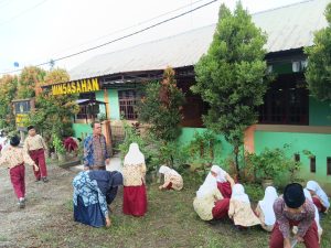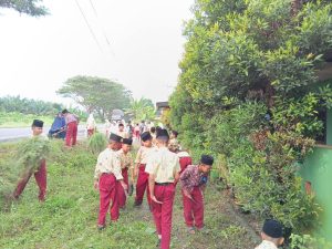 Kegiatan yang dimulai sekitar pukul 08.00 WIB ini diikuti dengan antusias oleh Para siswa, dengan membawa peralatan sederhana seperti cangkul kecil, parang, dan kantong plastik, bahu-membahu membersihkan setiap sudut halaman. Canda tawa dan semangat kerja sama di antara para siswa mengubah kegiatan yang melelahkan menjadi momen yang menyenangkan dan penuh makna.