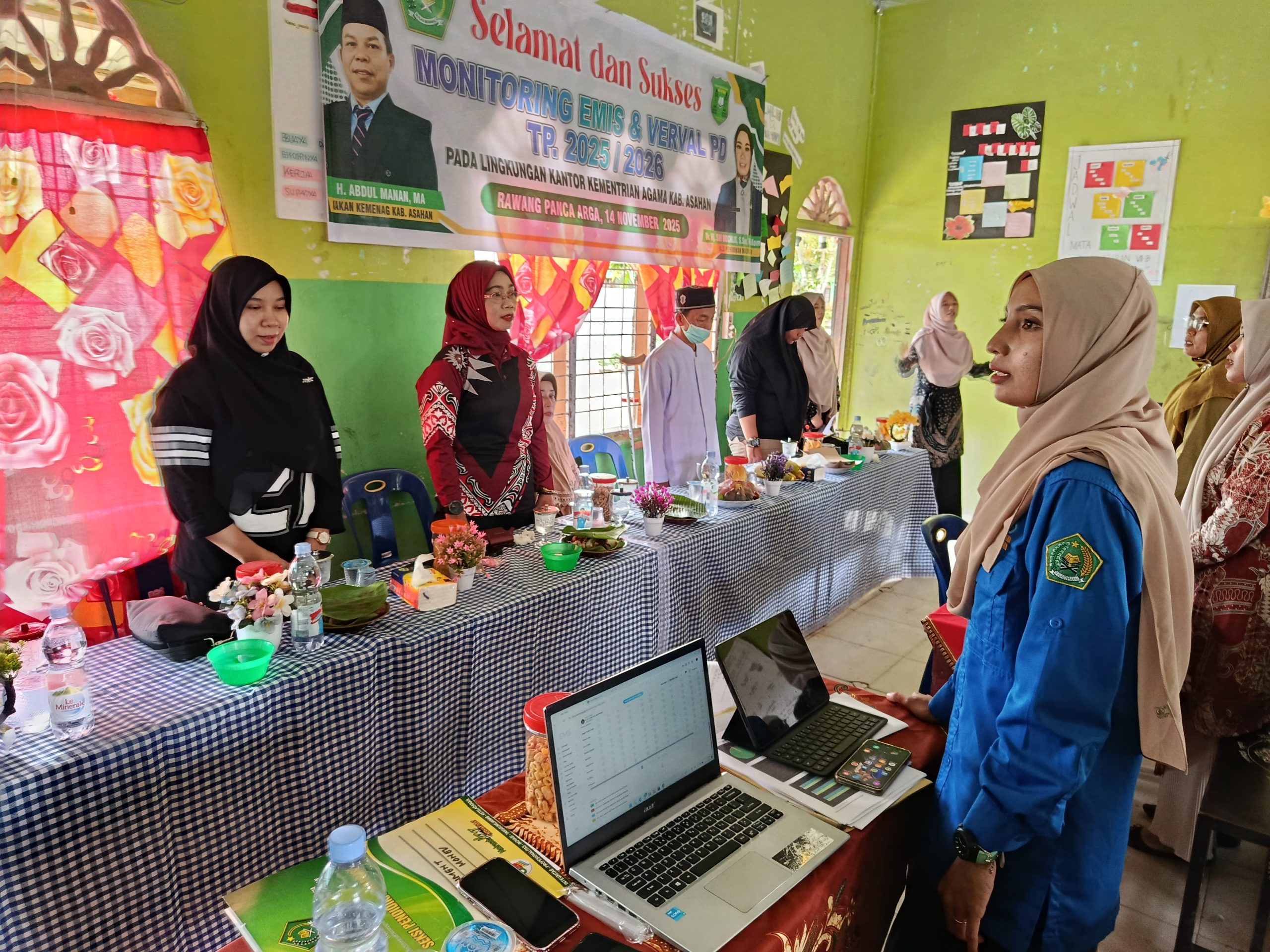 Monev Emis dan Verval PD zona 5 dilakukan pada Jumat (14/11/2025) di MYs Pesantren An Ni’mah Asahan Kec. Rawang Panca Arga.Kegiatan ini dihadiri oleh Kepala Seksi Pendidikan Madrasah Kantor Kementerian Agama Asahan Dr. Hj. Sri Mukhlis, S. Sos, M. I. Kom. beserta seluruh staf pendidikan madrasah Kemenag Asahan yagn diikuti oleh 24 Madrasah.