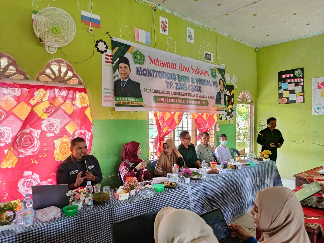 Asahan (Humas). Education Management Information System (EMIS) merupakan sistem informasi yang digunakan oleh Kementerian Agama untuk mendata lembaga pendidikan keagamaan seperti madrasah, pondok pesantren, dan perguruan tinggi keagamaan yang berfungsi untuk menyediakan dan mengelola data yang diperlukan untuk perencanaan dan pengambilan kebijakan pendidikan bagi pemerintah. Hal ini sejalan dengan pernyataan HD Emis Kabupaten Asahan Muri Hamdani bahwa semua data siswa harus valid agar tidak ada lagi kesalahan pada ijazah siswa tersebut nantinya.