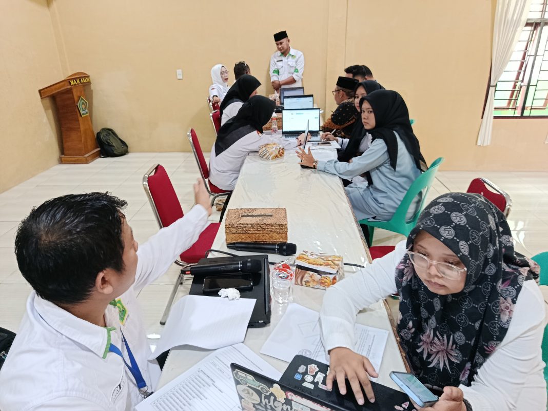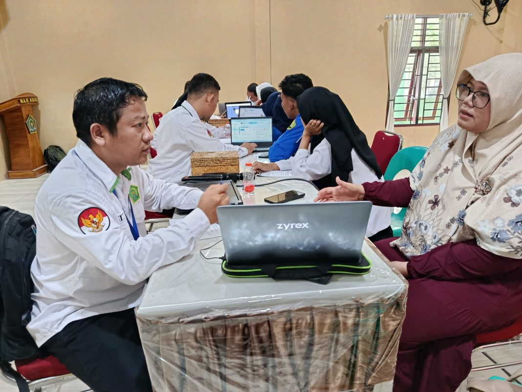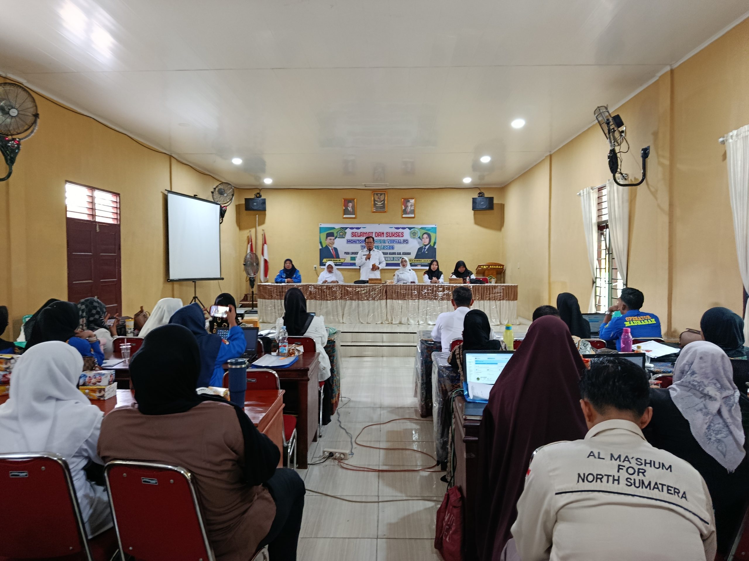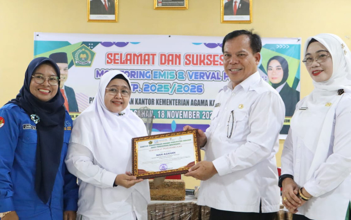 Asahan (Humas). Kantor Kementerian Agama Kabupaten Asahan melalui Seksi Pendidikan Madrasah Kemenag Asahan kembali melakukan kegiatan Monitoring dan Evaluasi (Monev) Emis dan Verval PD untuk seluruh madrasah se-Kabupaten Asahan zona VII Tahun Pelajaran 2025/2026 yang dilaksanakan di MAN Asahan, Selasa (18/11/2025). Kegiatan ini dihadiri oleh Kakan Kemenag Asahan H. Abdul Manan, MA. didampingi oleh Kasi Penmad Kemenag Asahan Dr. Hj. Sri Muchlis, S. Sos., M. I. Kom. dan Kepala MAN Asahan Dra. Hj. Elda Ayumi, M. Si. serta seluruh staf Pendidikan Madrasah dan seluruh Kepala dan Opertor Madrasah yang berjumlah 64 madrasah.