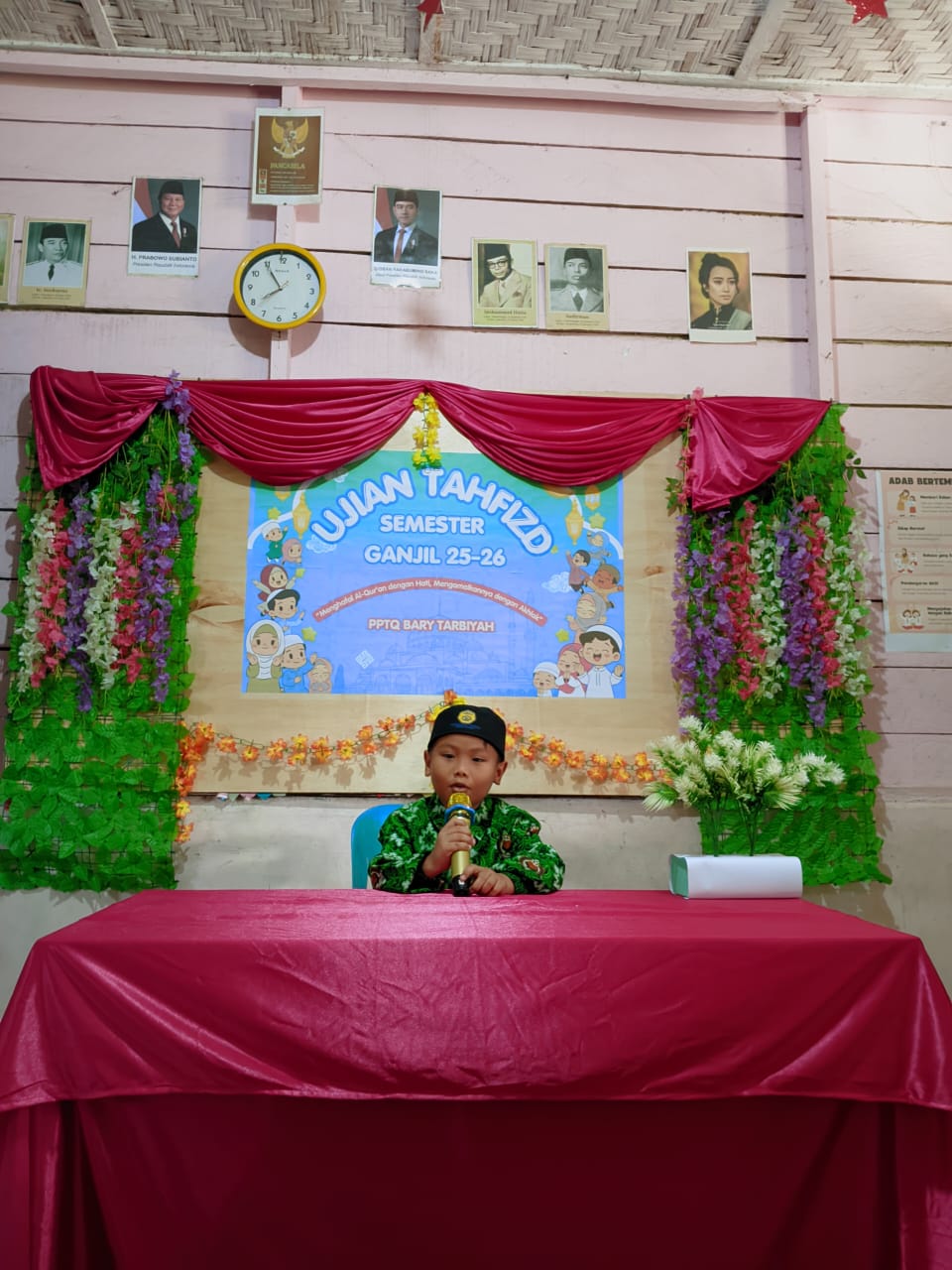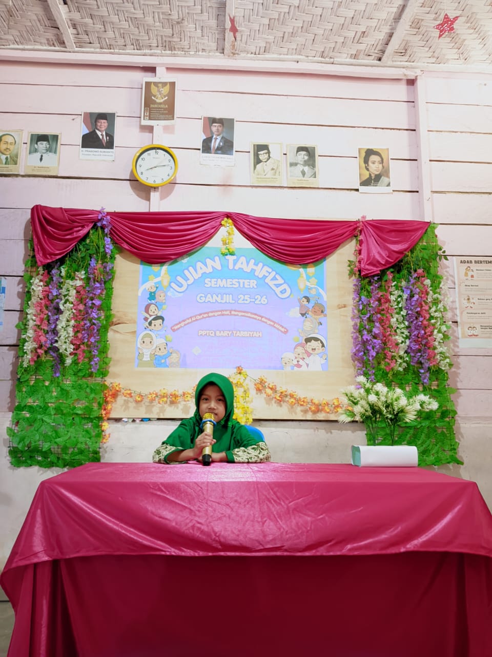 Kepala MIS Bary Tarbiyah, Siti Nurjanah, S.Pd.I., menyampaikan bahwa kegiatan Ujian Tahfidz Al-Qur’an ini dilaksanakan secara rutin setiap semester sebagai bentuk evaluasi pembelajaran sekaligus penguatan karakter religius peserta didik. Melalui program ini, madrasah berharap dapat melahirkan lulusan yang unggul secara akademik serta memiliki kecintaan yang kuat terhadap Al-Qur’an sebagai pedoman hidup. (TIM JURNALIS MIS BARY TARBIYAH)