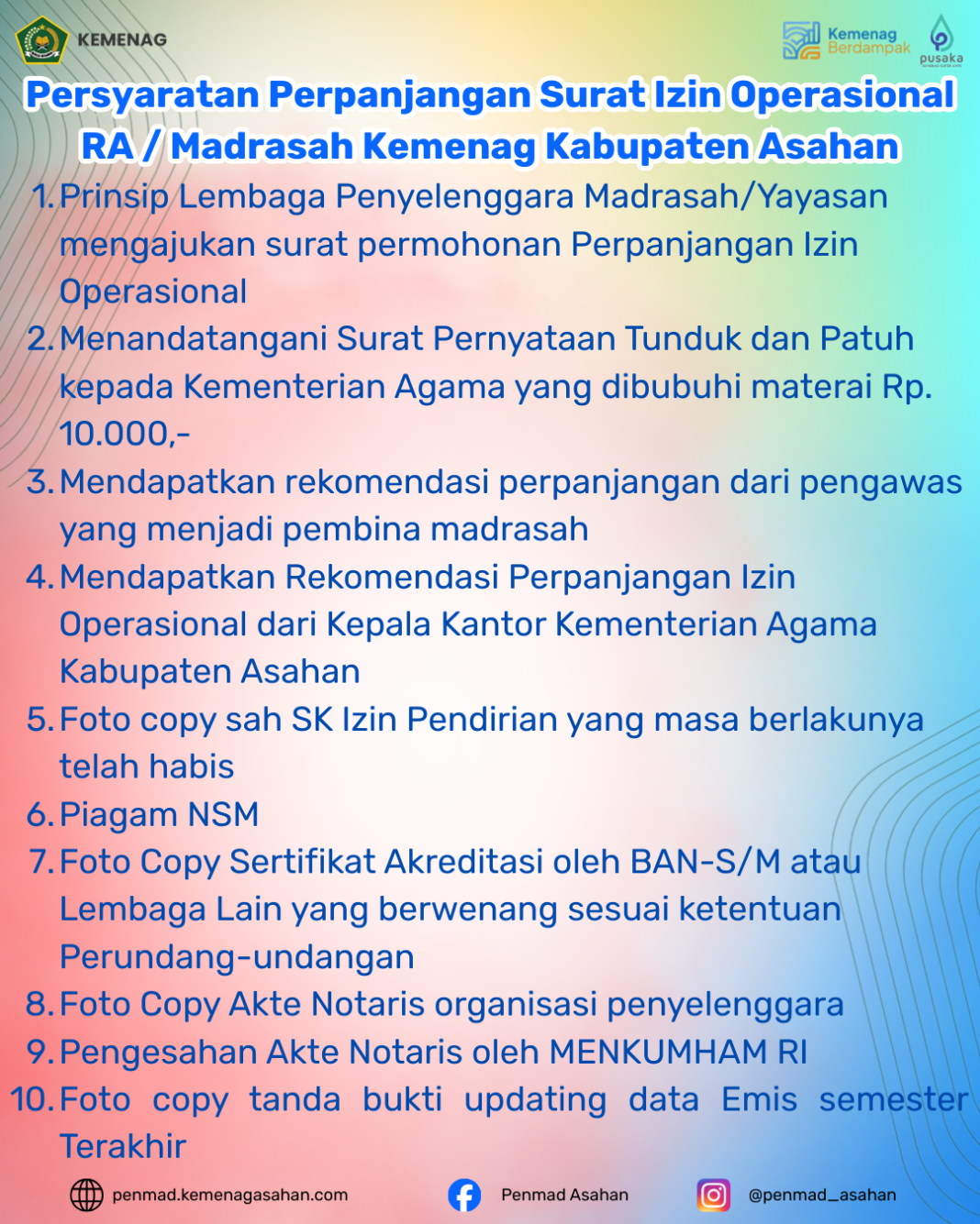 KAMU HARUS TAU Persyaratan Perpanjangan Surat Izin Operasional RA / Madrasah Kemenag Kabupaten Asahan By penmad - February 6, 2026 0 139 FacebookWhatsApp