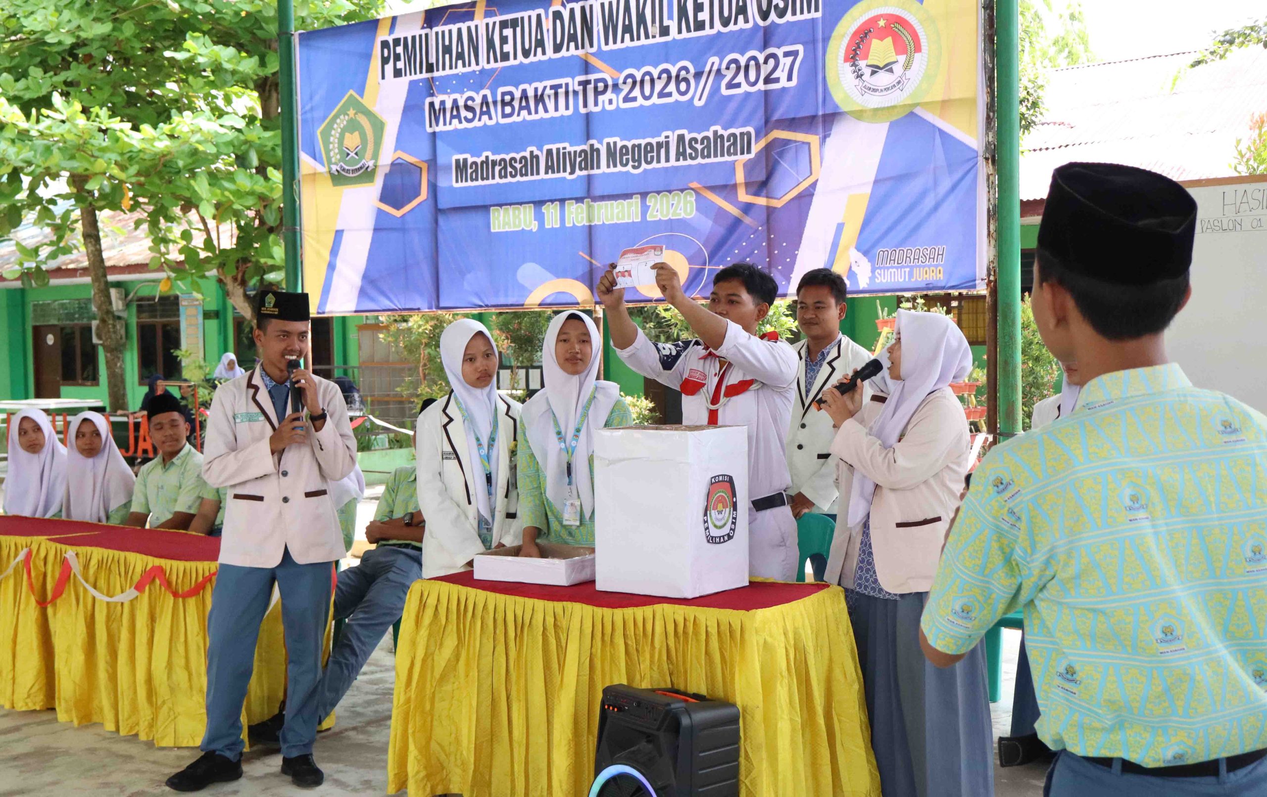 Pemungutan suara yang dilaksanakan di aula terbuka MAN Asahan pada Rabu (11/2/2026) berlangsung tertib dan lancar. Kegiatan ini diikuti oleh seluruh peserta didik MAN Asahan sebagai bentuk partisipasi aktif dalam pelaksanaan demokrasi di lingkungan madrasah.