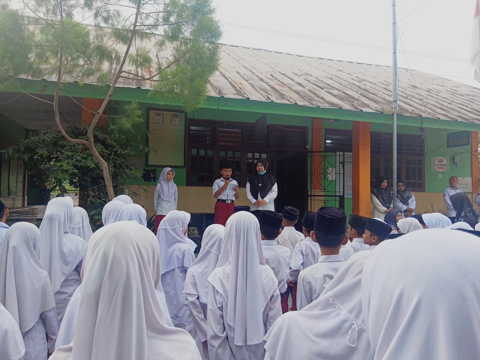 Hessa Perlompongan (Humas). Suasana khidmat menyelimuti halaman Madrasah Ibtidaiyah Negeri (MIN) 5 Asahan pada Selasa (24/02/2026) pagi. Di tengah teriknya matahari yang mulai meninggi, ratusan pasang mata tertuju pada panggung utama saat dua siswa berprestasi tampil membawakan pidato bertema spiritualitas Ramadan.